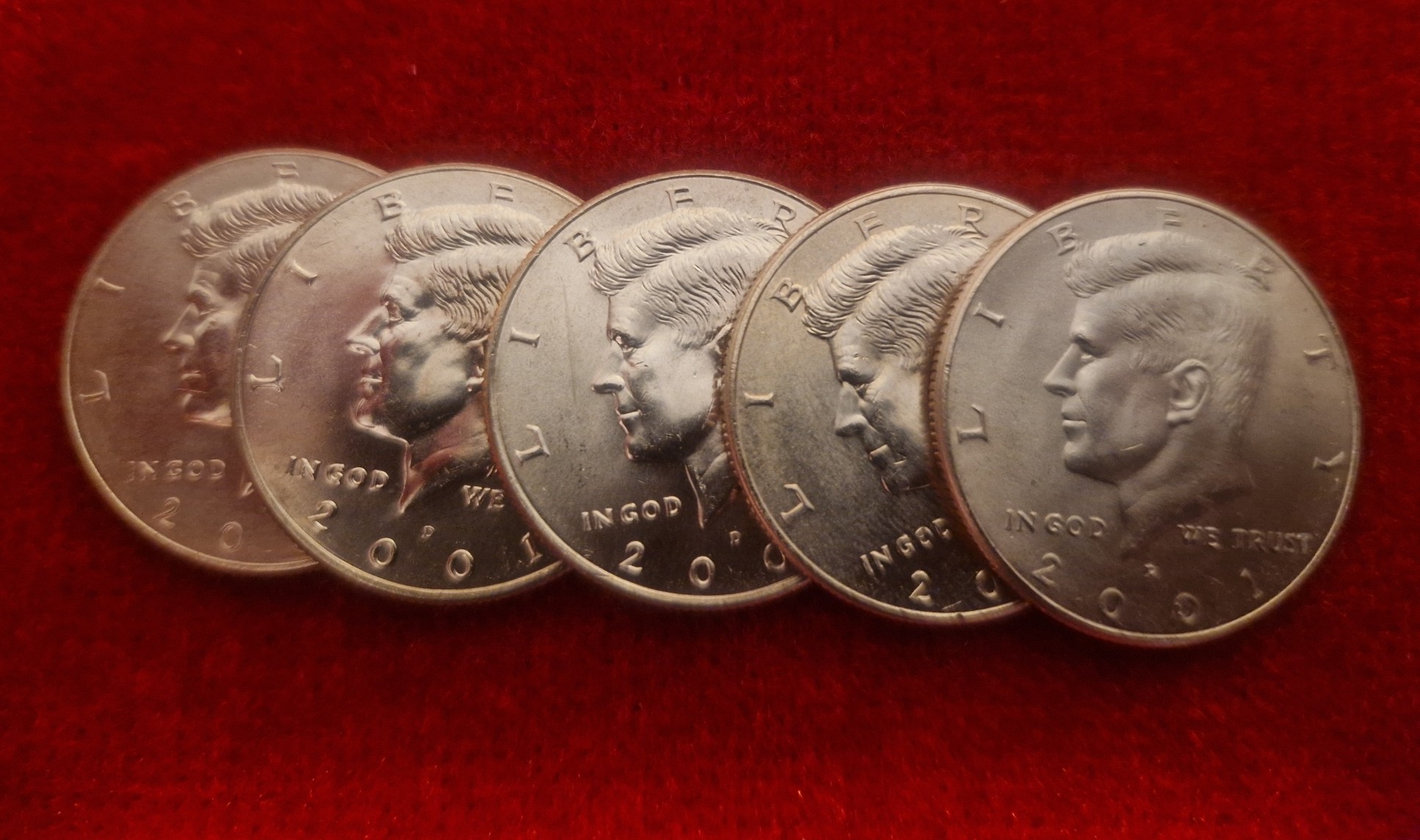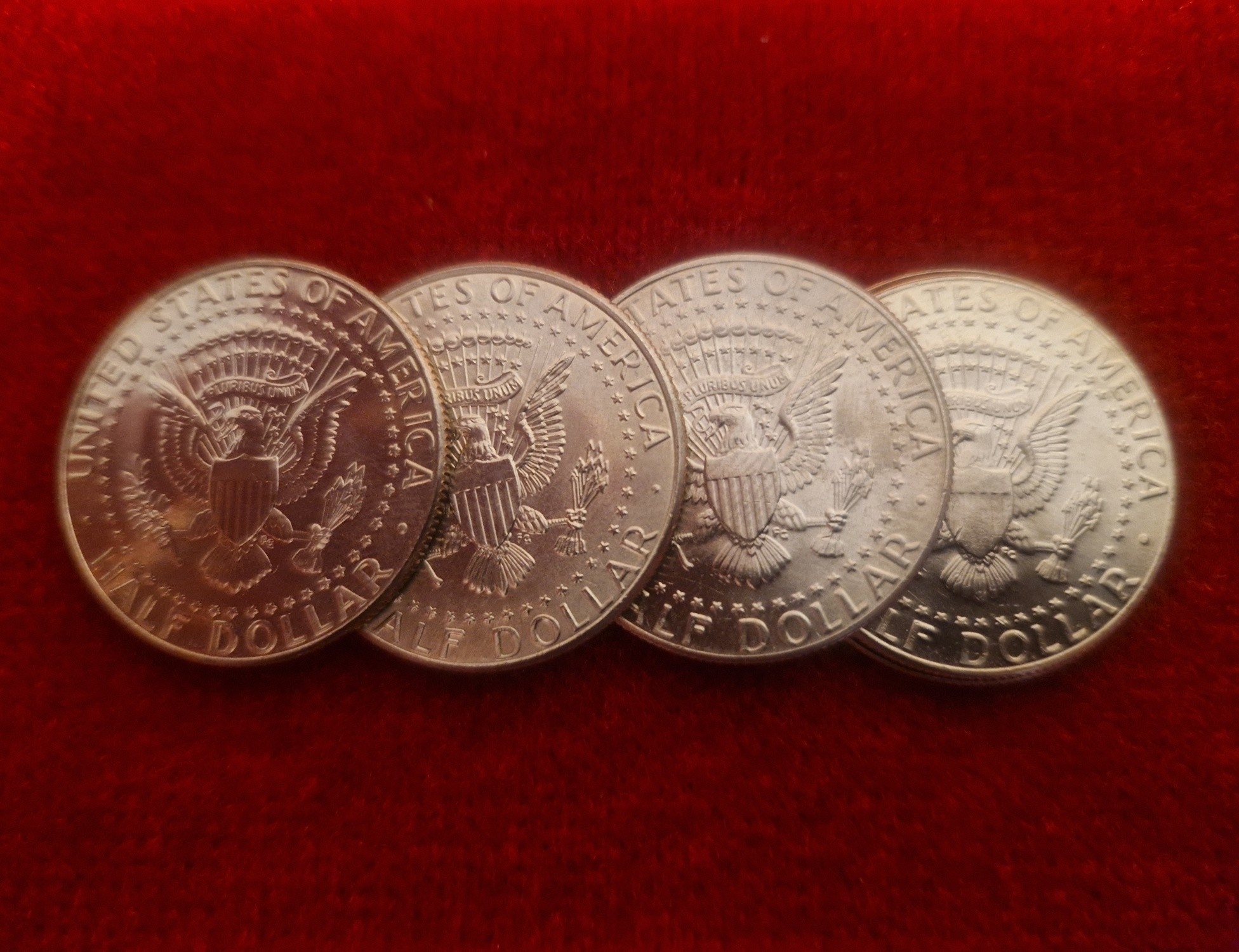 These are matched sets of Kennedy Half Dollars. Each set consists of 4 regular halves and one true expanded shell that glides over ALL the coins in the set. Perfect for the classic matrix or coins across. These sets are individually measured so that all the coins are a perfect fit.